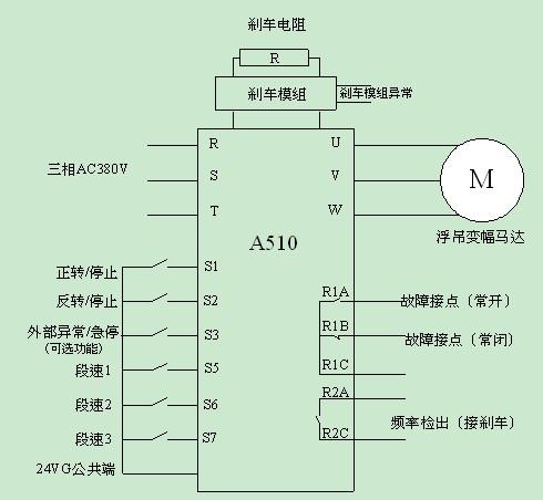 變幅機構是目前浮吊變頻改造較多的部分,要求變頻器具有低頻大轉矩、調速范圍大、調速響應快等性能。