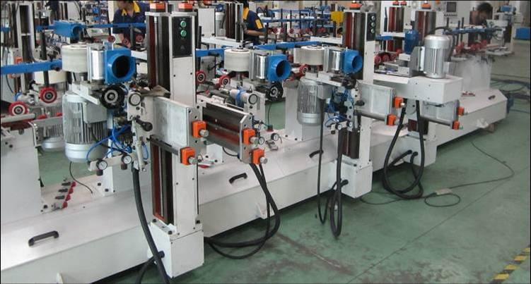 實木線條是室內(nèi)裝潢的必備材料,主要用于美化和保護(hù)裝飾面板的收口位置,如門套線、平板線、百葉線等。實木線條由專門的機(jī)械將各種木材剖析加工而成,木線條的加工質(zhì)量的優(yōu)劣直接決定了裝飾效果的好壞。自動線條砂光機(jī)是專業(yè)對各種形狀木線條進(jìn)行砂光的機(jī)器,利用砂帶、砂布()砂光木工件表面,適合異性線條的砂光,減少人力、增進(jìn)產(chǎn)能,并能對復(fù)雜的直線仿形邊進(jìn)行的砂光。砂帶速度和送料速度均采用變頻器控制,實現(xiàn)無級變速。