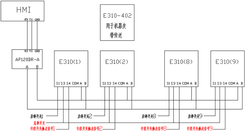 系統(tǒng)組成:臺安AH系列觸摸屏+AP100系列PLC+E310系列變頻器(11.5kw92.2kw)